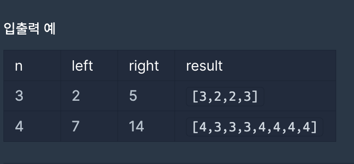 고로 left부터 right까지 값을 answer에 넣어주면 된다.