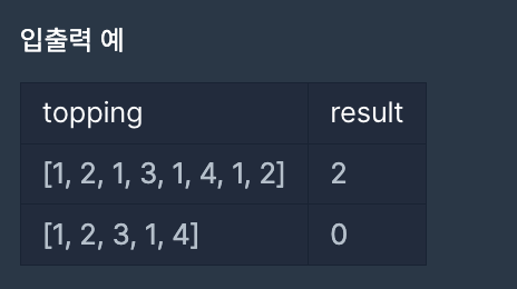 이렇게 자를 수 있으니 각 자른 배열에 들어가 있는 종류만 비교하면 된다.